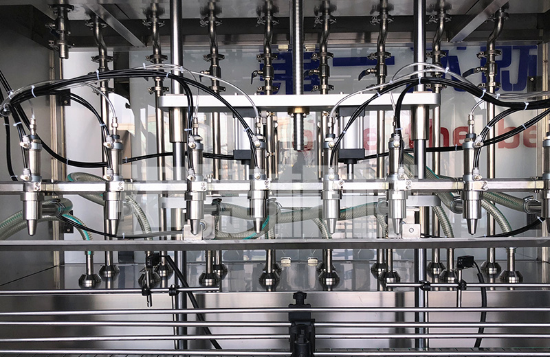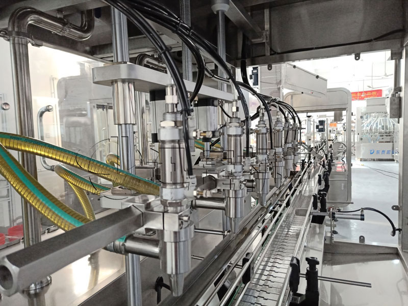 動力結構部分:單頭單泵單變頻,每個灌裝頭自帶動力,最大程度避免因為管路分流不均造成的灌裝誤差,精度高,速度快(供料快),多段速灌裝,保證灌裝精度的前提下,提高20%的灌裝速度。設